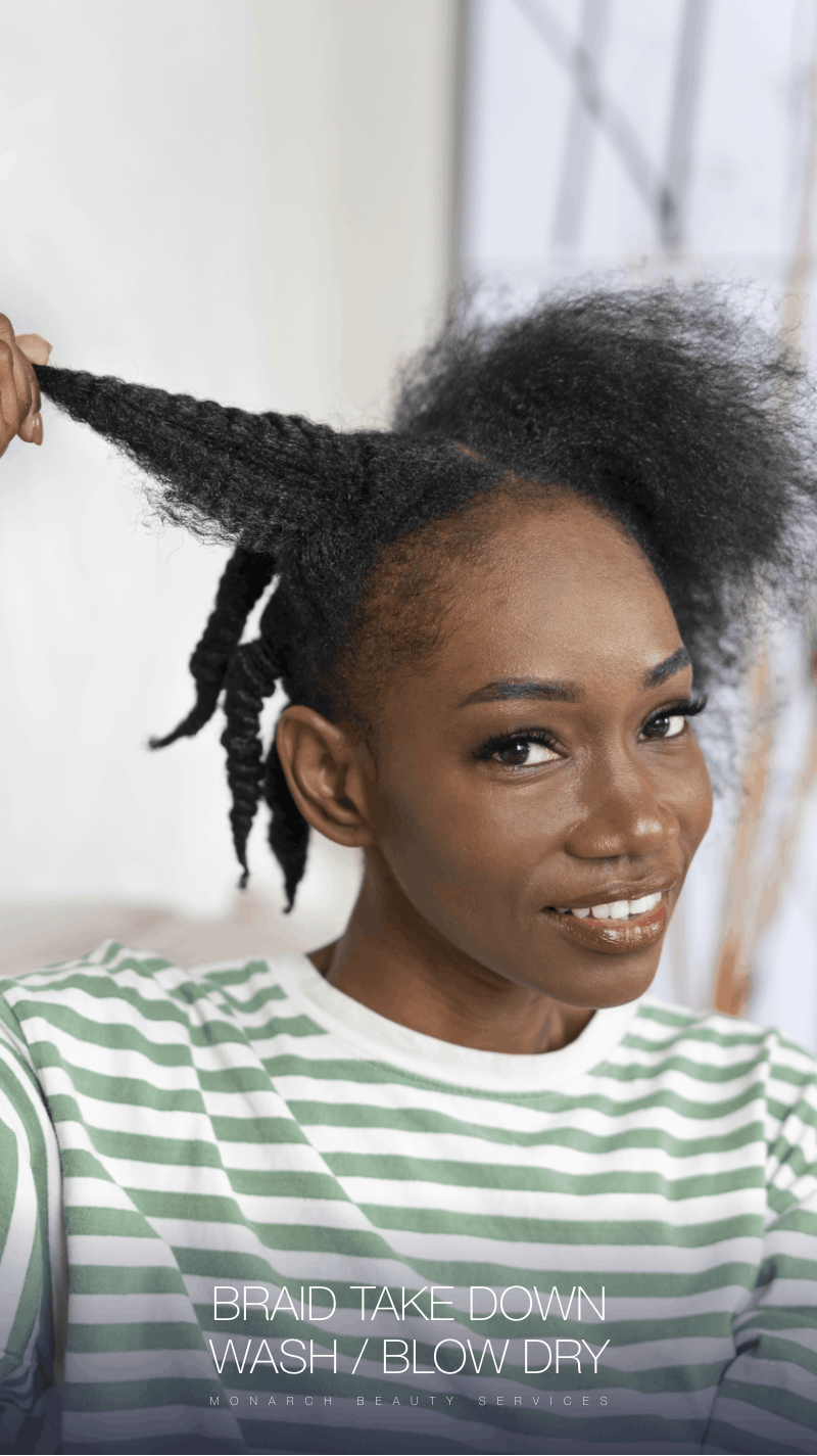 Takedown Service involves careful removal of braids, extensions, or protective styles to prevent damage and minimize breakage.
