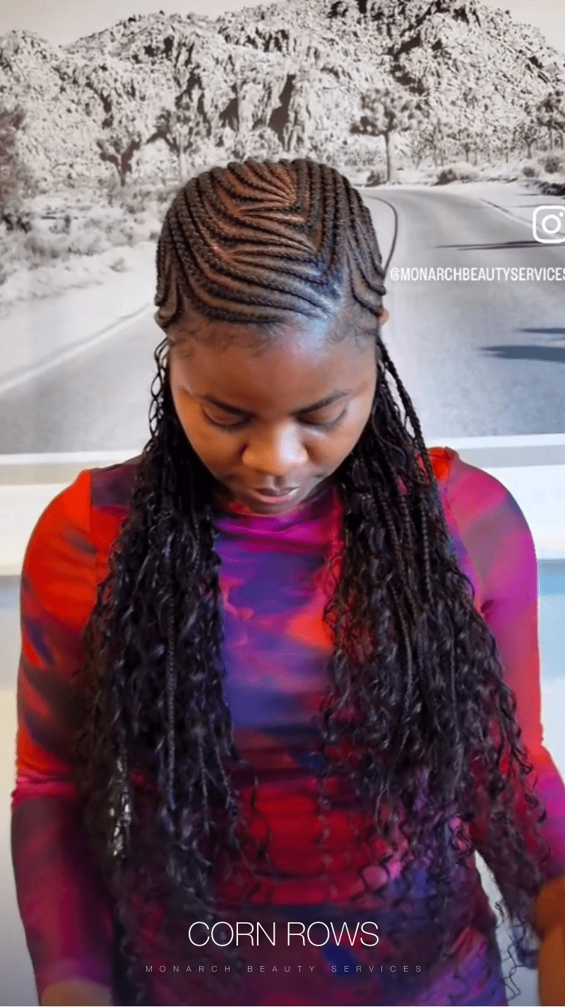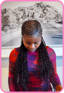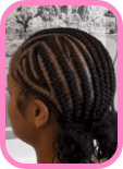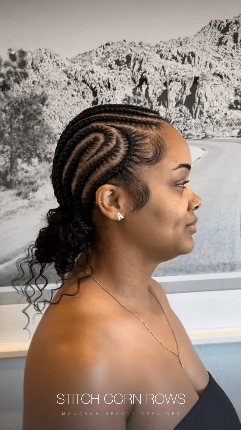 Stitch Braids are a sleek, modern style of cornrows created using a “stitching” technique, where clean, thin sections of hair are parted with precision to form sharp, defined lines between each braid. This gives the braids a neat, patterned, and eye-catching look. They can be styled straight back, in designs, or combined with other braid styles for versatility.